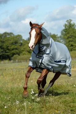 Die Bucas Buzz-off Linie besteht aus einem sehr feinmaschigen Gewebe, das selbst kleinste Insekten fernhält und vor UV-Schutz bietet. Zusätzlich sind die Produkte extrem leicht und reflektieren die Wärme und garantieren somit höchsten Tragekomfort für das Pferd auch an besonders heißen Tagen. Die Buzz-off Full-Neck Fliegendecke hat ein integriertes Halsteil und schützt somit neben dem Körper auch den Hals des Pferdes, der große Schweiflatz bedeckt zudem die Schweifrübe ausreichend. Des Weiteren verfügt die Decke über einen Bauchlatz, der den empfindlichen Pferdebauch vor Insektenstichen schützt. Schulter- und Halsbereich sind weich gefüttert um Scheuerstellen zu vermeiden.