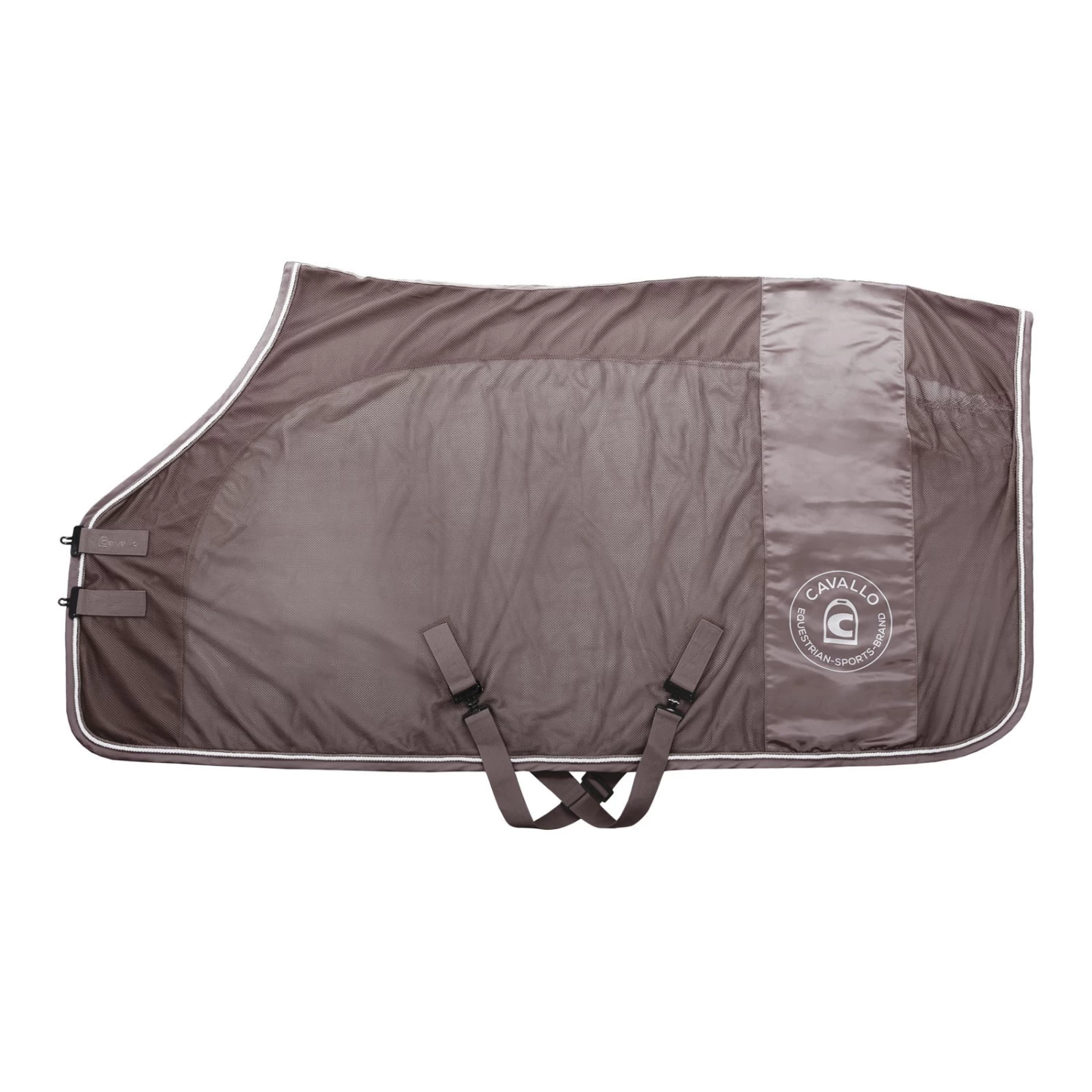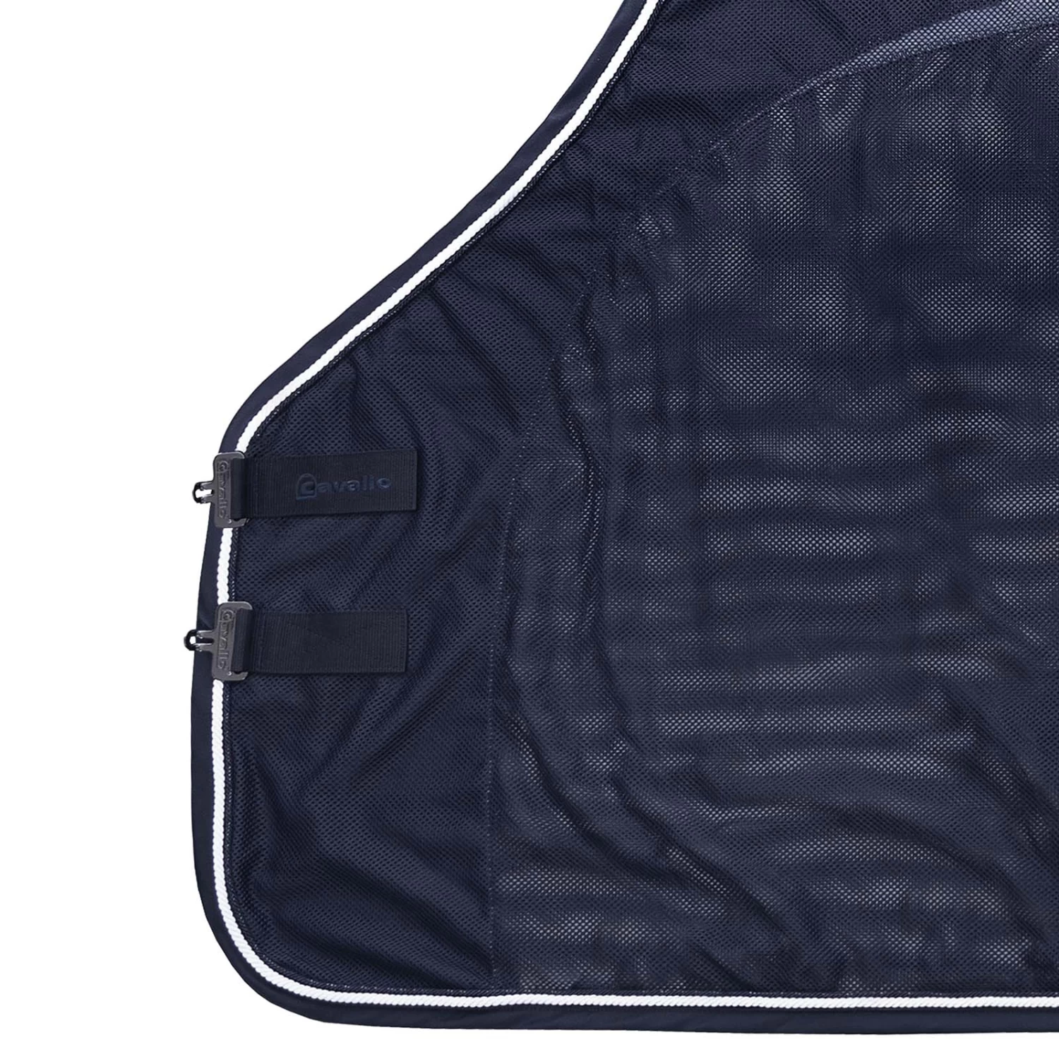 Funktionelle Fliegendecke aus engmaschigem Netzmaterial für einen optimalen Schutz vor Insekten. Am vorderen Abschluss und auf dem oberen Rücken sorgt ein atmungsaktives Mesh-Gewebe für einen optimalen Feuchtigkeitstransport. Zwei T-Brustverschlüsse vorne garantieren sicheren Halt. Die abnehmbare, doppelte Kreuzbegurtung ermöglicht eine perfekte Fixierung der Decke. An beiden Rückseiten befinden sich zwei tonige, vertikale Streifen aus edel schimmerndem Satin sowie zwei große, glänzende Cavallo Drucke in Gummioptik in glitzerndem Silber. Die Drehhakenverschlüsse sind alle in Gunmetal gehalten und versehen mit einem Kristall sowie dem eingeprägtem Cavallo Logo. Die Decke ist eingefasst mit zwei unterschiedlich breiten Kordeln, von denen eine tonig und eine in Weiß gehalten ist. Im Bereich des Schweifes ist die Decke mit einem abnehmbaren Band zu fixieren.