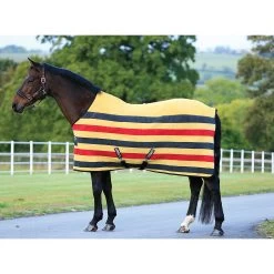 Die Rambo Deluxe Fleece ist fut für das wunderschöne, klassiche Design und die exzellenten thermischen und Feuchtigkeit absorbierenden Eigenschaften bekannt. Eigenschaften dieses Utensils für die Sattelkammer sind der klassische Schnitt, der doppelte Frontverschluss und die sichere Kreuzbegurtung. Dieses Fleece aus super Qualität transportiert Feuchtigkeit vom Pferd ab, hält es warm und ermöglicht dennoch eine Abkühlung. Die Rambo Deluxe Fleece ist für den Transport sowie für den Gebrauch im Stall geeignet und kann problemlos mit allen anderen Rambo Accessoires kombiniert werden.