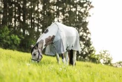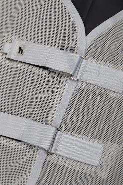 Die Horze Nevada Combo-Decke hat alles, was dein Pferd im Sommer braucht: Der obere, wasserdichte Teil schützt vor Regen und ist aus lichtreflektierendem Gewebe gefertigt. Das atmungsaktive Unterteil hält Fliegen fern. Weiches Kunstfell am Widerrist bietet Komfort. Das abnehmbare Halsteil bietet zusätzlichen Schutz und Atmungsaktivität und ist einfach zu befestigen. Hohe Gehfalten schränken die Bewegungsfreiheit deines Pferdes nicht ein. Der doppelte Frontverschluss, die Kreuzgurte und die Beinschlaufen halten die Decke an ihrem Platz.