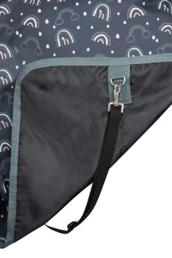 Die Horze Trixi Weidedecke für Ponys ist aus wasserdichtem Material gefertigt und in bunten Regenbogenfarben gestaltet. Silberne Beschläge verleihen ihr einen eleganten Touch. Zwei vordere Schnallen, Kreuzgurte und elastische Beingurte halten die Decke an ihrem Platz. Das schillernde Logo sorgt für ein gewisses Extra. Kombiniere diese Decke mit dem Rest unseres Horze Trixi Pony-Sortiments, um ein komplettes Outfit zu erhalten!