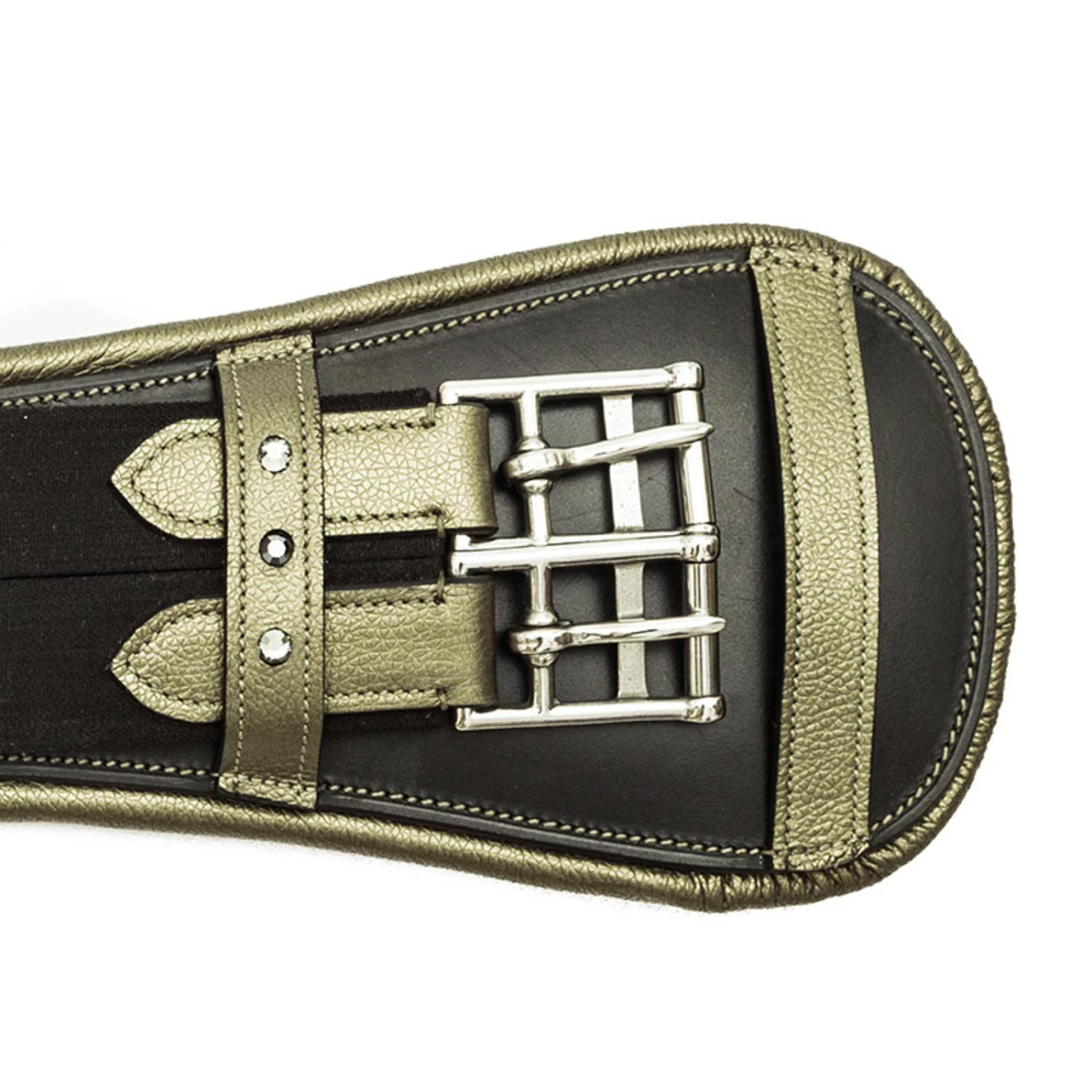 Hochwertiger Kurzgurt für die Dressur. Mit schicken Strassteinen versehen und farblich abgesetztem Leder.