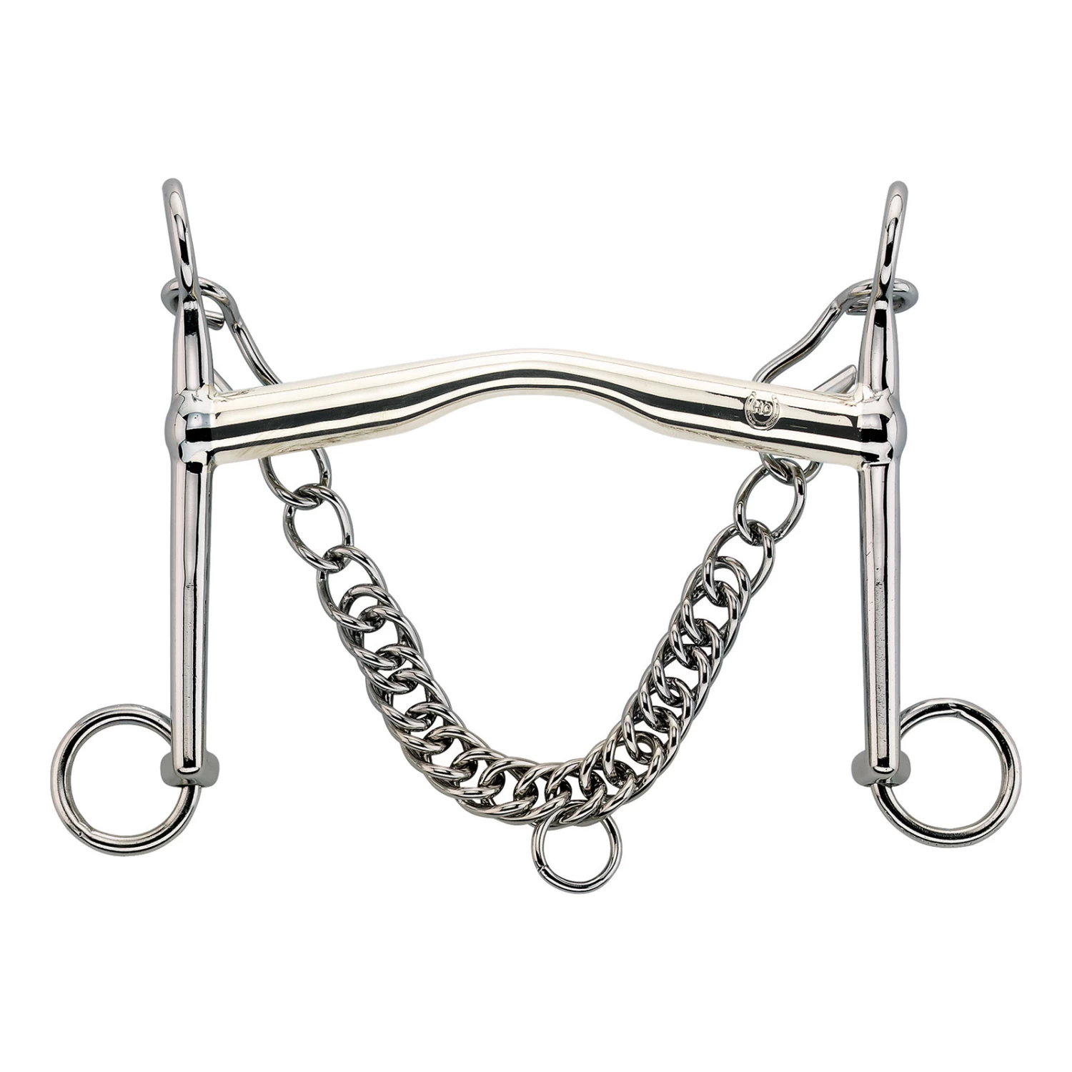 Die Konstruktion des Mundstücks mit einer nach vorn geneigten Zungenfreiheit, deren weiche Übergänge in angeschrägte seitliche Gebissteile übergehen, besticht durch feinste Druckverteilung auf der Zunge. Der Tastsinn wird in optimaler Weise genutzt was eine besonders präzise Einwirkung ermöglicht.*Diese Kandare ist empfehlenswert, um ein Pferd schonend und sicher mit der Kandare vertraut zu machen. Das angeschrägte Mundstück fördert die Harmonie zwischen Reiterhand und Pferdemaul und sorgt für ein entspanntes Herantreten an die Kandare.*Durch die kurzen Anzüge kommen die Zügelhilfen sehr direkt im Pferdemaul an, da der Weg des Hebels kurz ist. Besonders wichtig ist deshalb eine gefühlvolle Reiterhand.