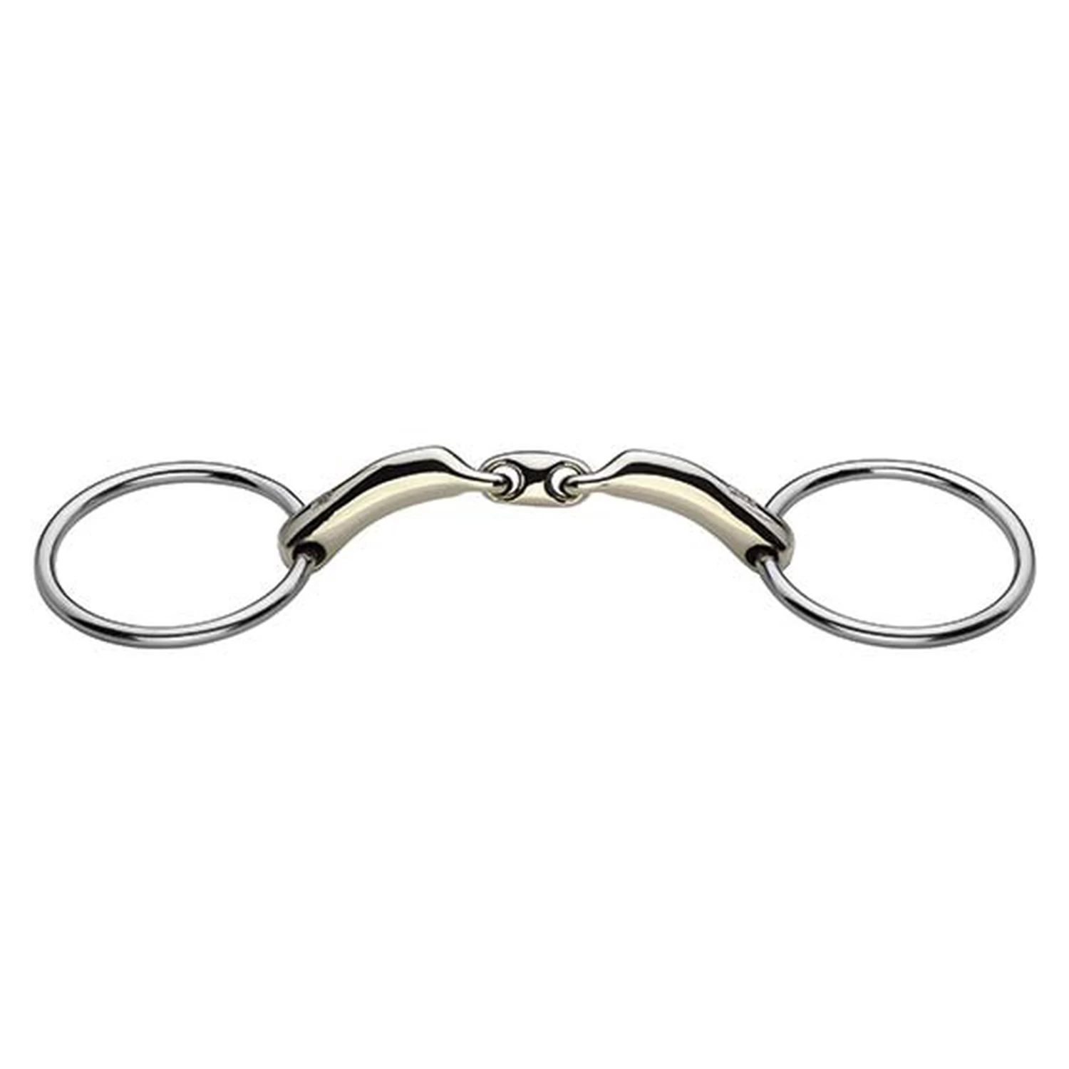 Mundstück: Doppelt gebrochen. Material: Sensogan mit Edelstahlseiten.G ebissstärke: 16 mm. Ringdurchmesser: 70 mm. Gebissringart: Wassertrense.